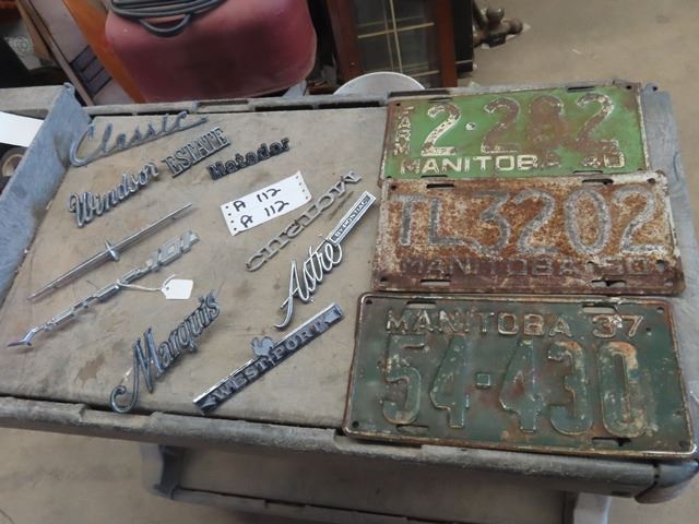Approd 10 Auto Car Emblems, 3 MB License Plates 1937, 40 & 50
