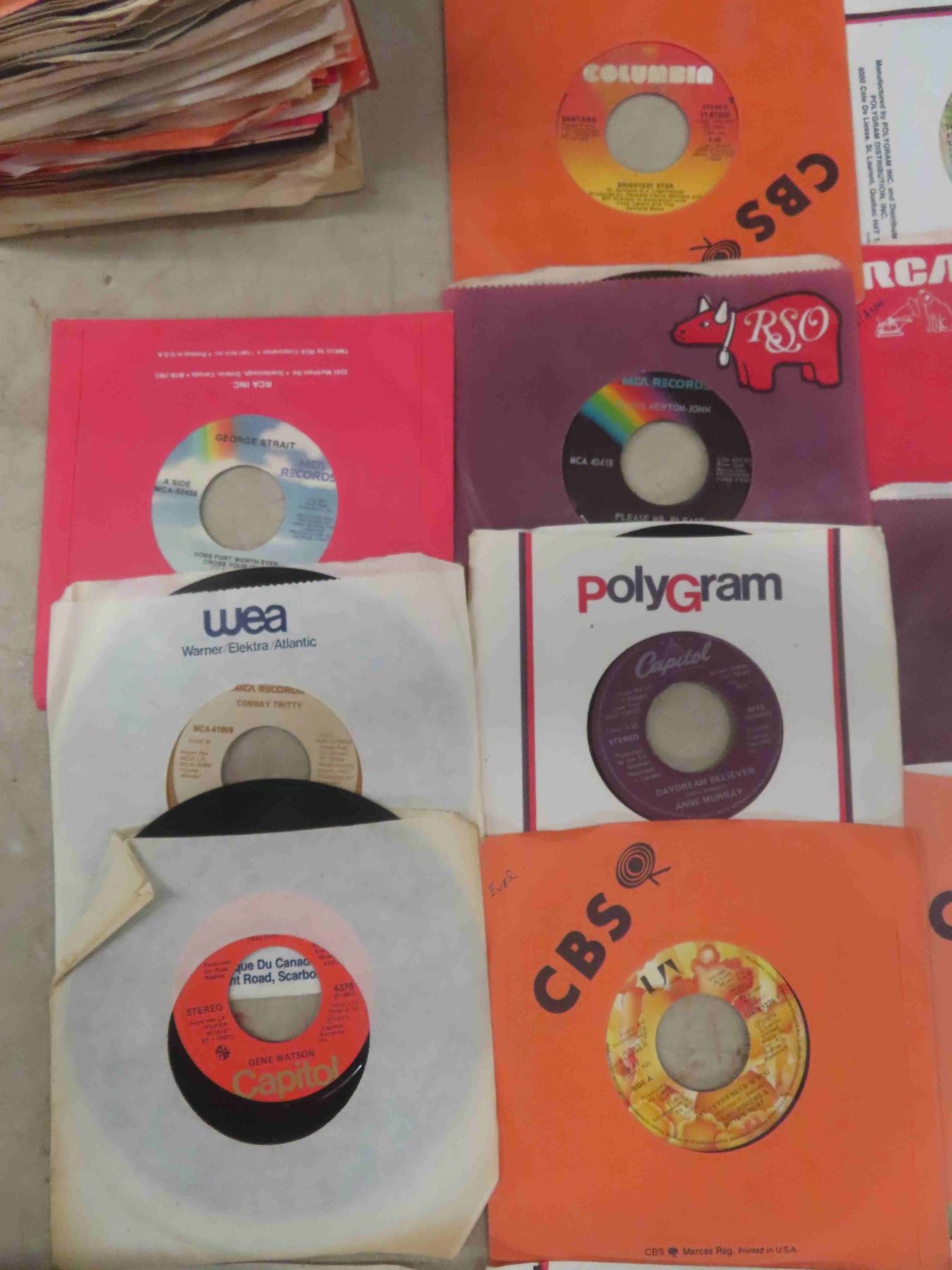 (Approx. 100) 45 RPM Rock & Roll Records - Santana, John Lennon, Abba, Helen Riddy, Lots of Great Artists