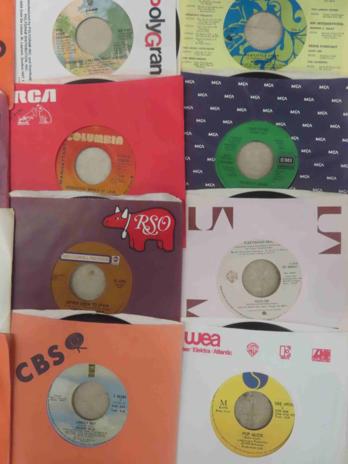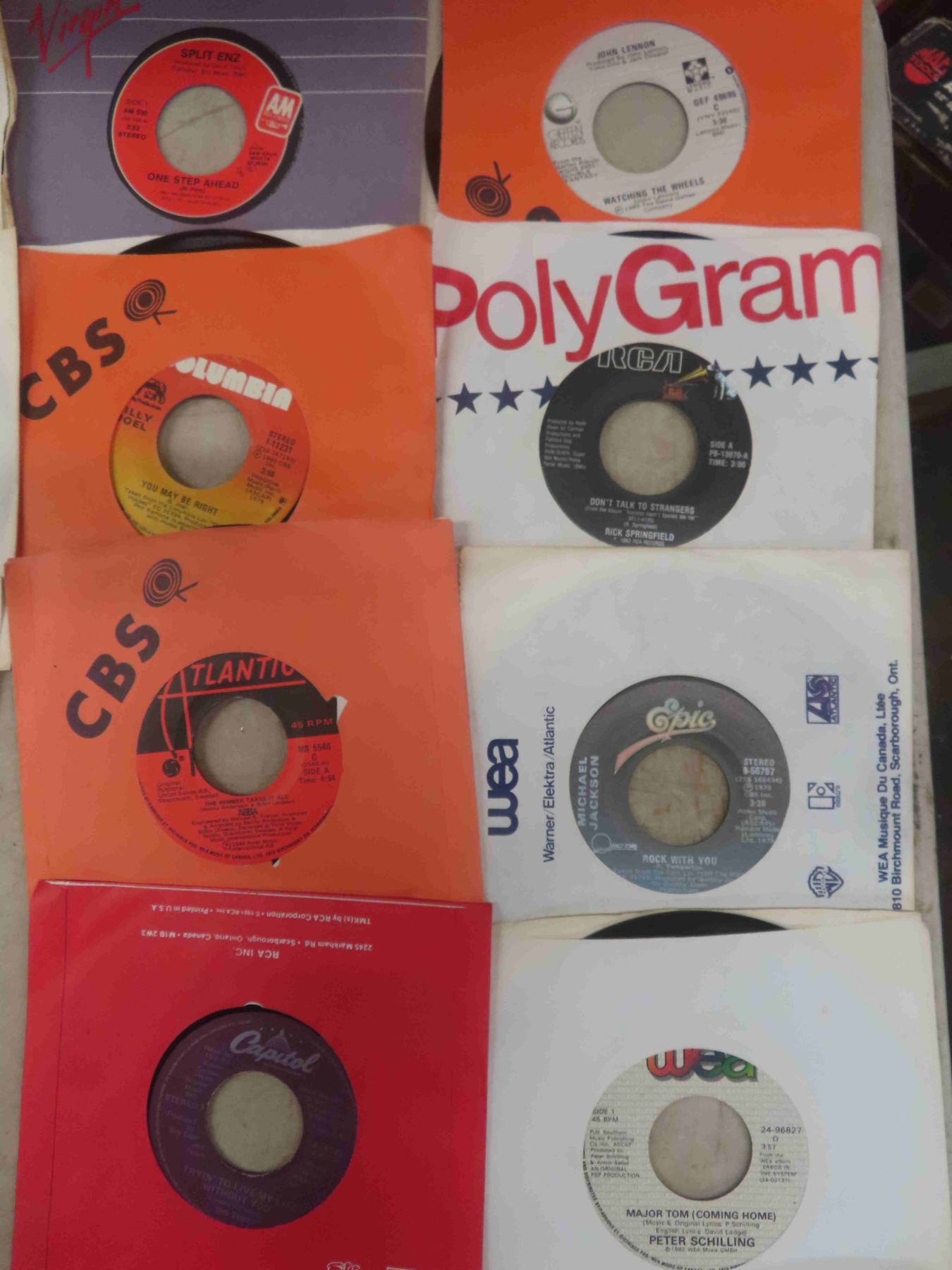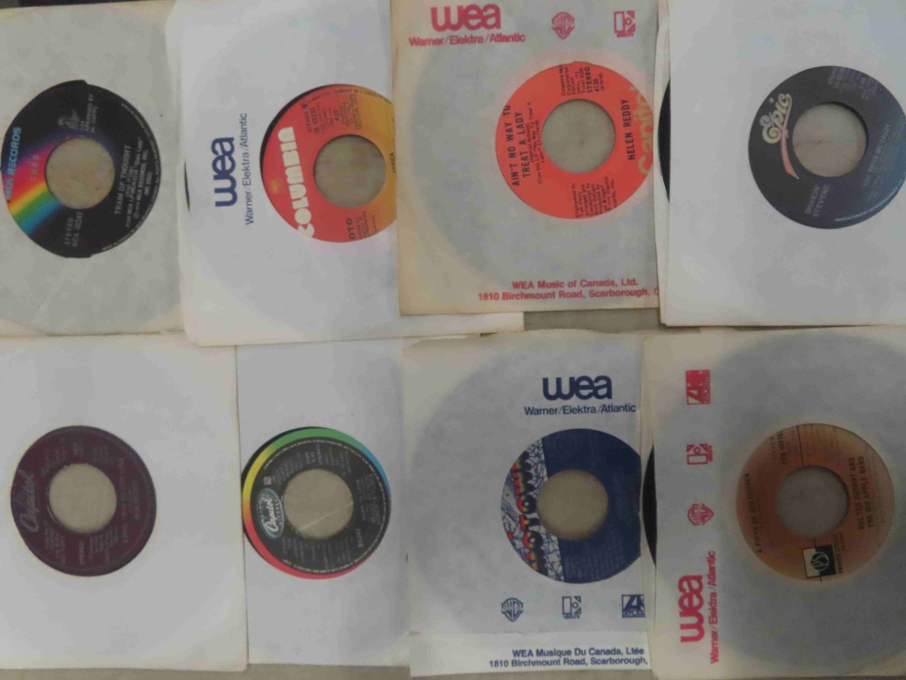 (Approx. 100) 45 RPM Rock & Roll Records - Santana, John Lennon, Abba, Helen Riddy,