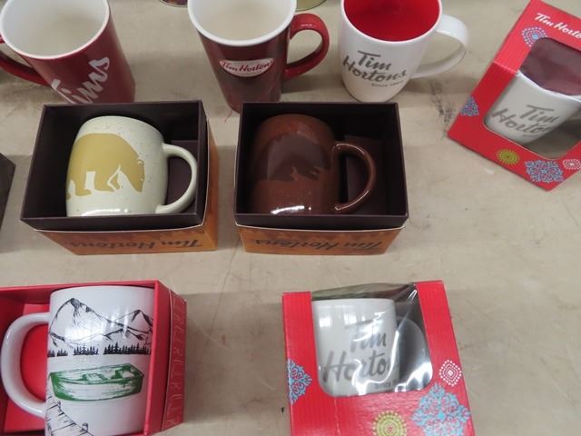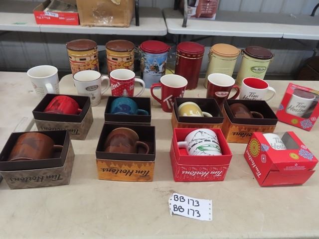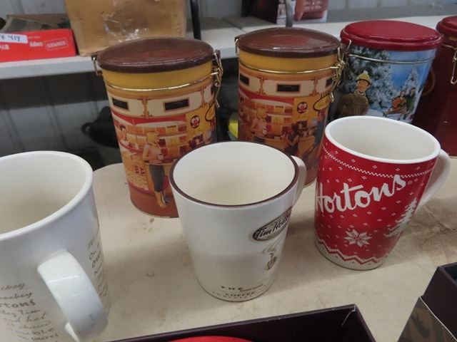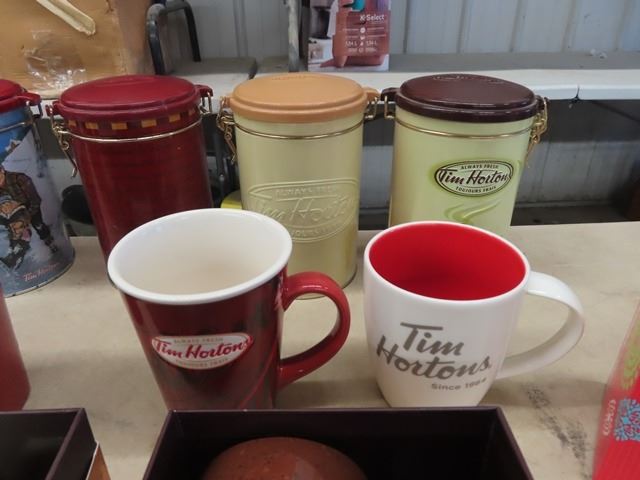 Approx 16 Tim's Mugs & 6 Metal Cannisters