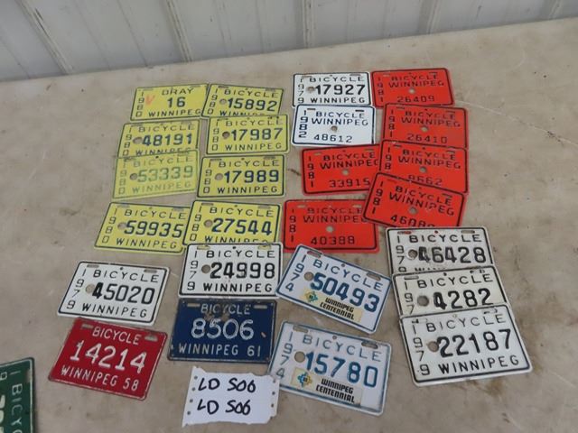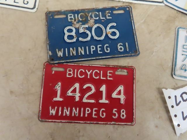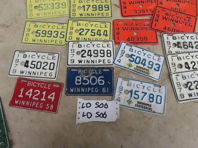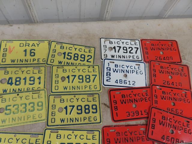 Approx 20 Bicycle License Plates 1970's & 80's w 1958 & 61 Wpg