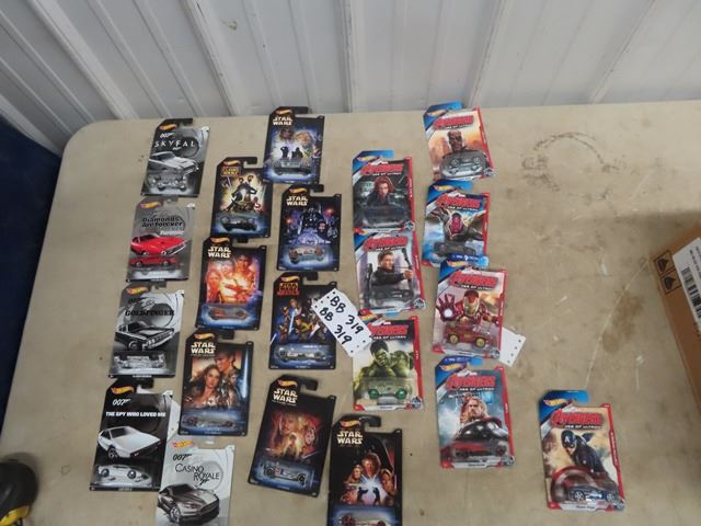 Approx 21 Hotwheels Toys in Pkg- Star Wars, 007, Avengers Plus