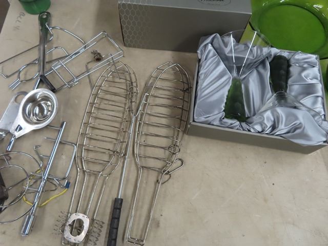 Approx 23 Pcs of Glassware, Martini Glasses, Fish Grillers, & Rotissiere Parts