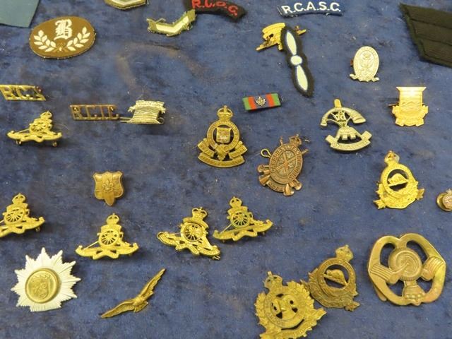 Approx 40 Military Badges, Cloth Insignia, Button Polisher, Rank