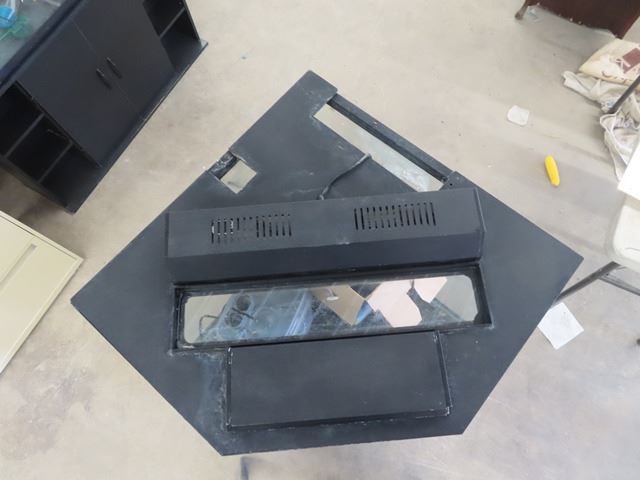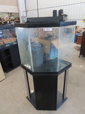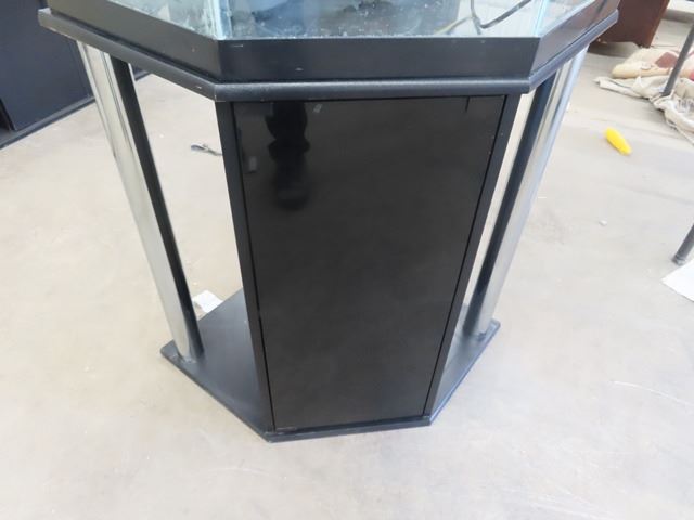 Aquarium & Stand w Accessories Aqaurium is 25" x 22" X Up to 22" & Stand Size 29" x 22" x Up to 22" (Diamond Shaped)