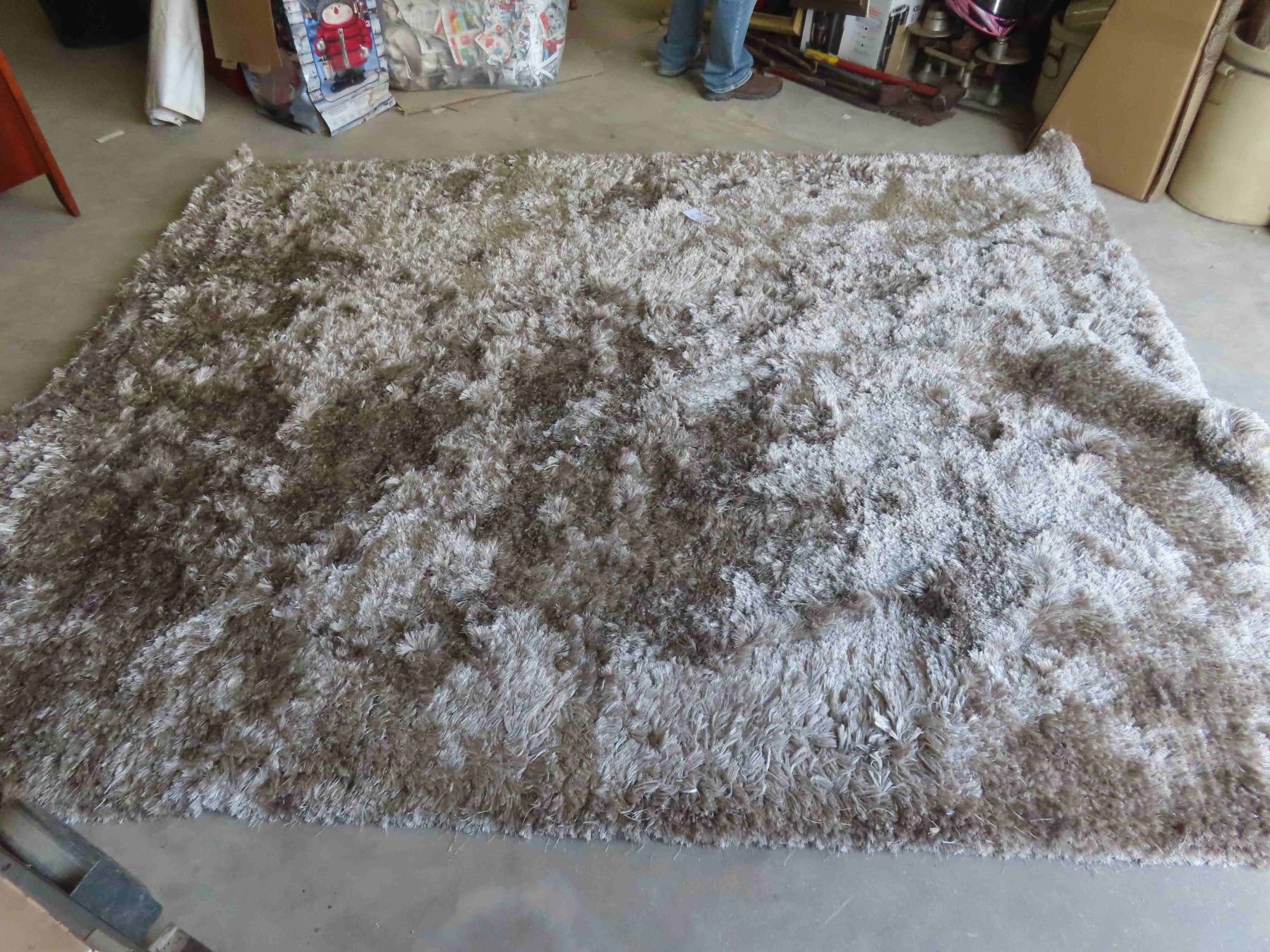 Area Rug 8ft x 10ft Shaggy Wool Beige/Browns