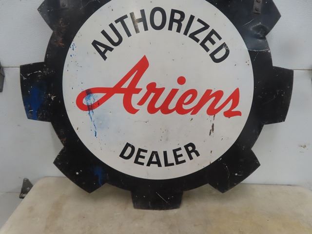 Ariens Authorized Dealer Double Sided Metal Sign with Original Brackets, Stout Sign Company USA 35 1/2'' Diameter