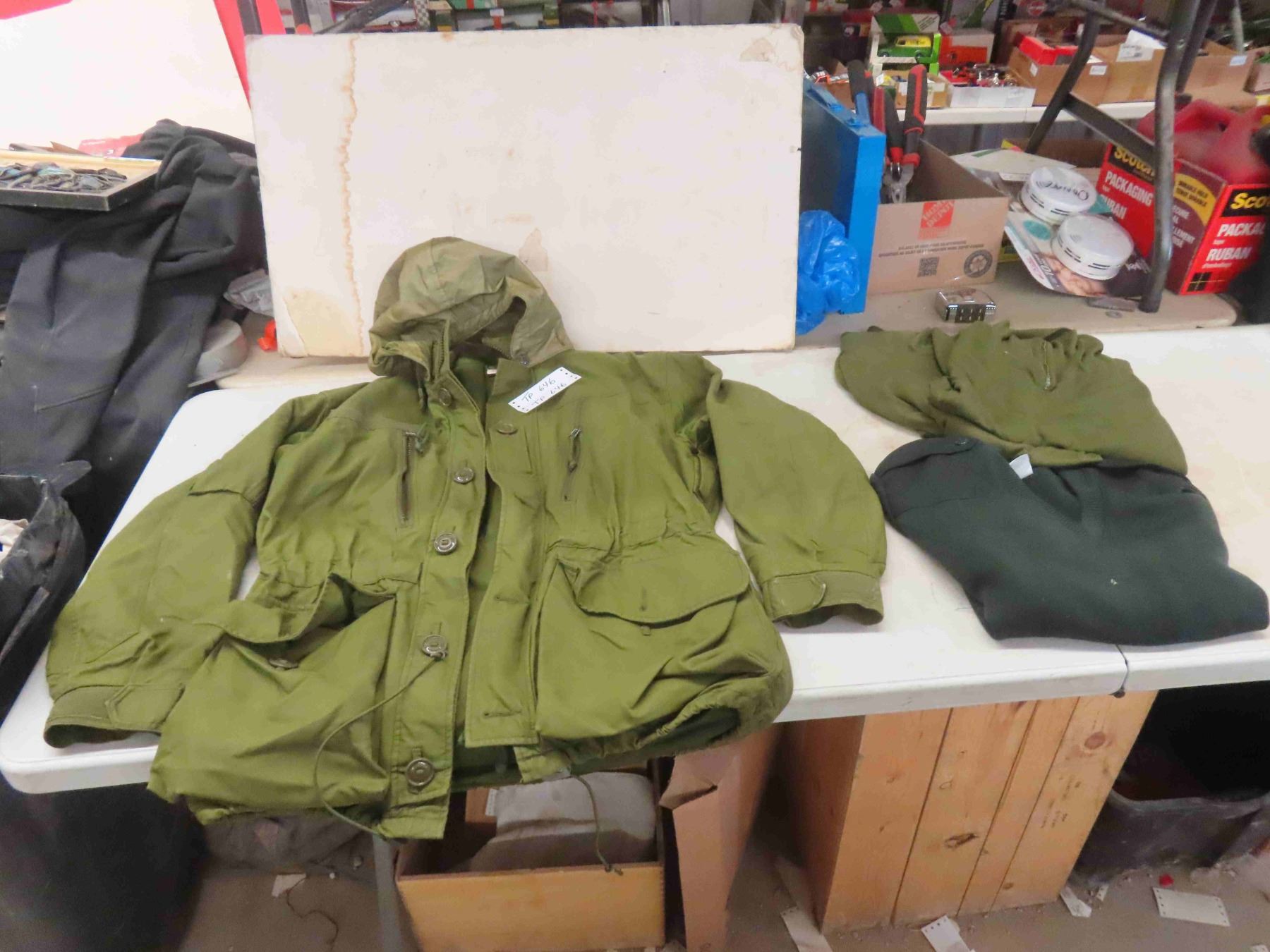 Army Green Men's Jacket Sz Med, 2 Long Sleeve Sz LG Tops + Black V Neck Sweater
