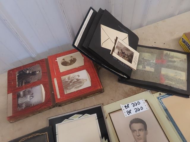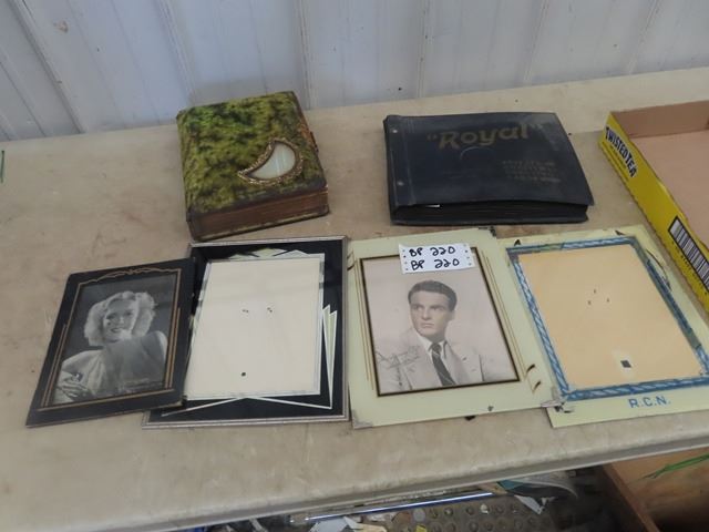 Art Deco Pic Frames, Victorian Phot Album w Some Photos, Royal Postcards