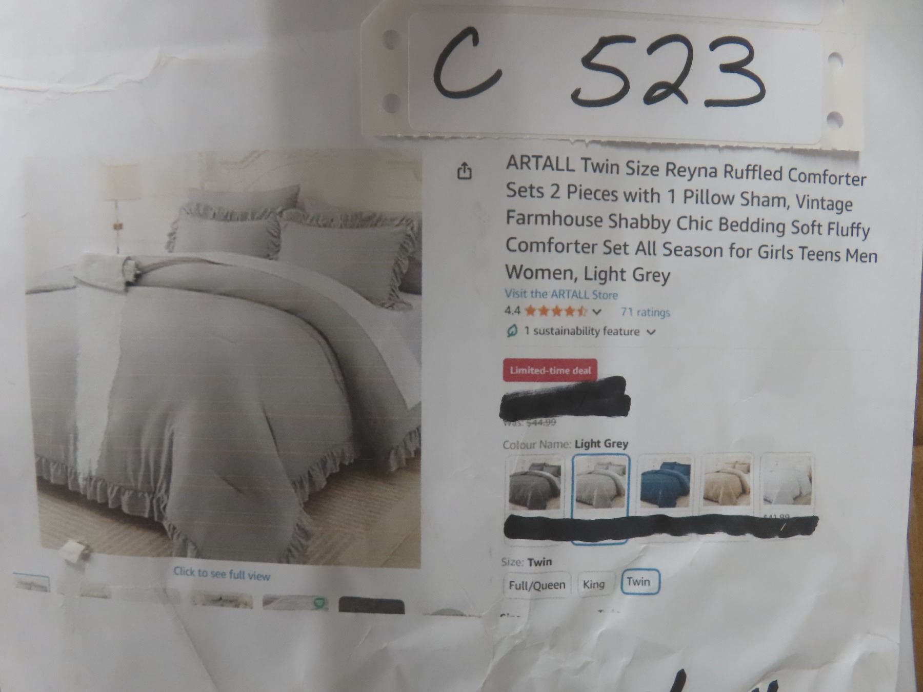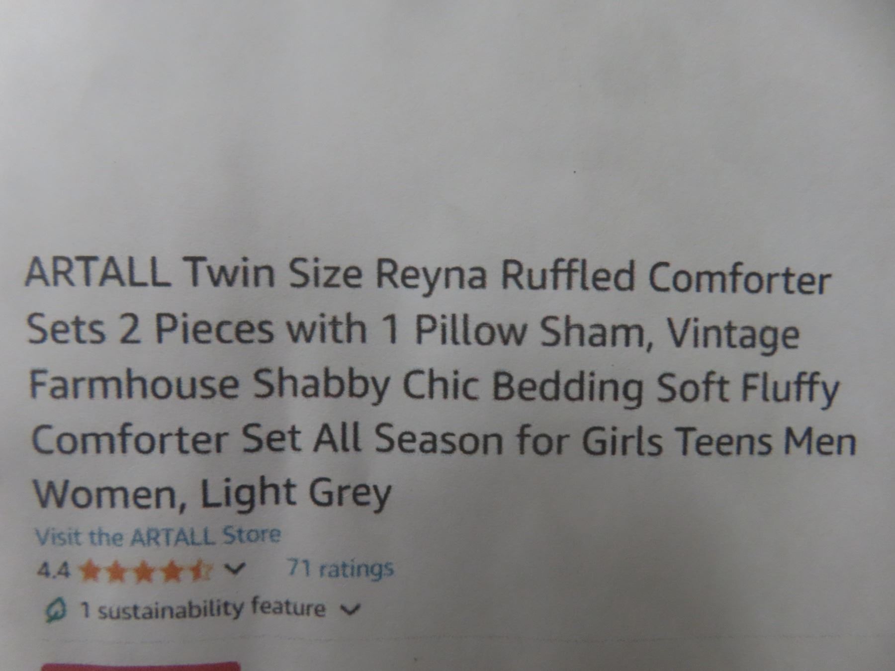 Artall Twin Size Reyna Ruffled Comforter Sets 2 Pieces with 1 Pillow Sham, Vintage Farmhouse Shabby Chic Bedding Soft Fluffy Comforter Set All Season for Girls Teens Men Women Light Grey