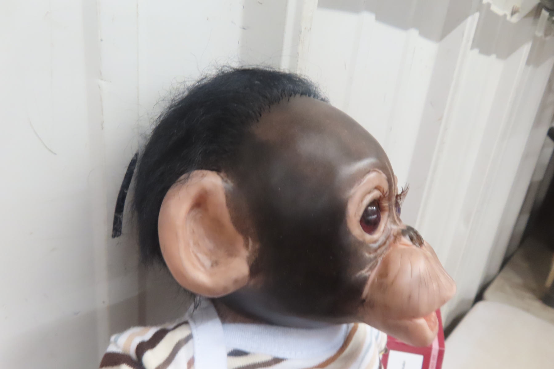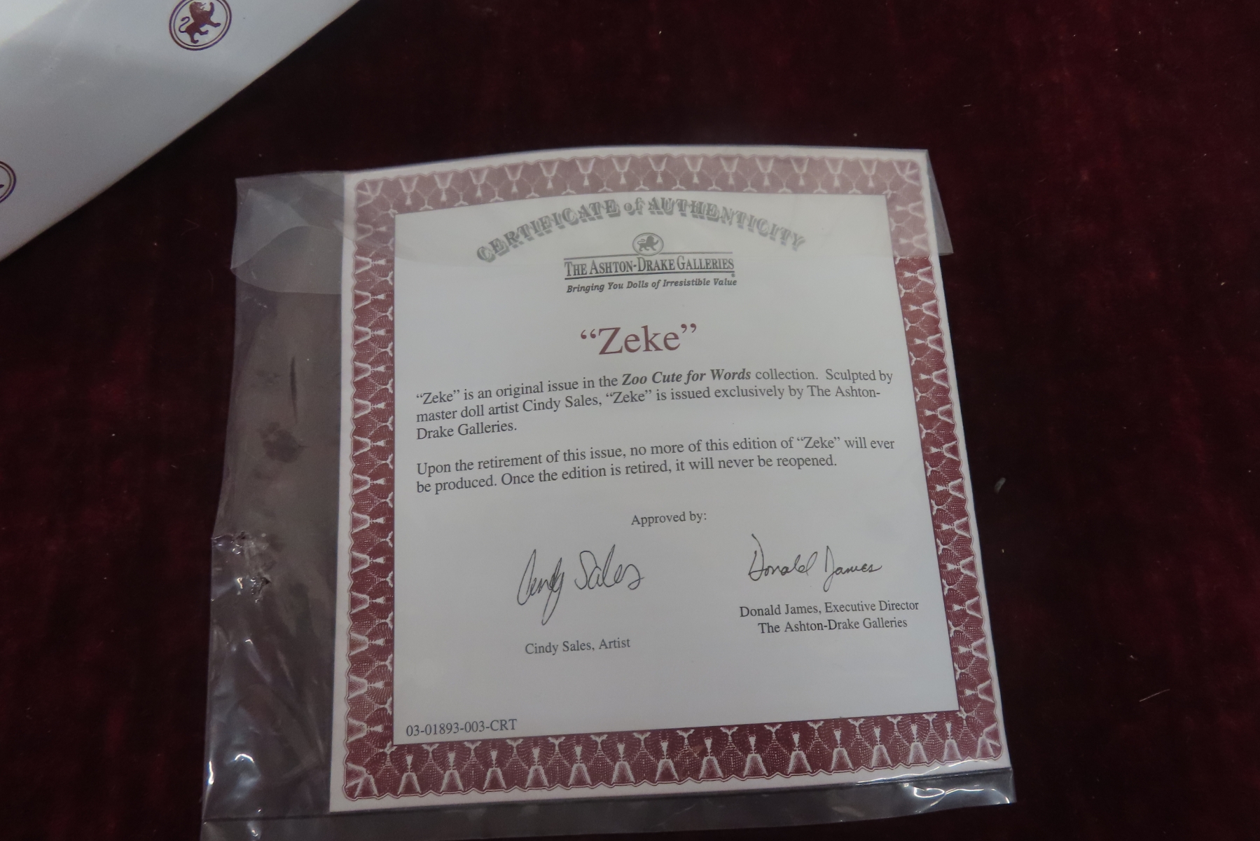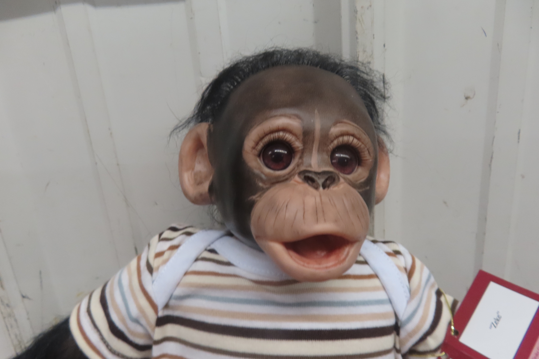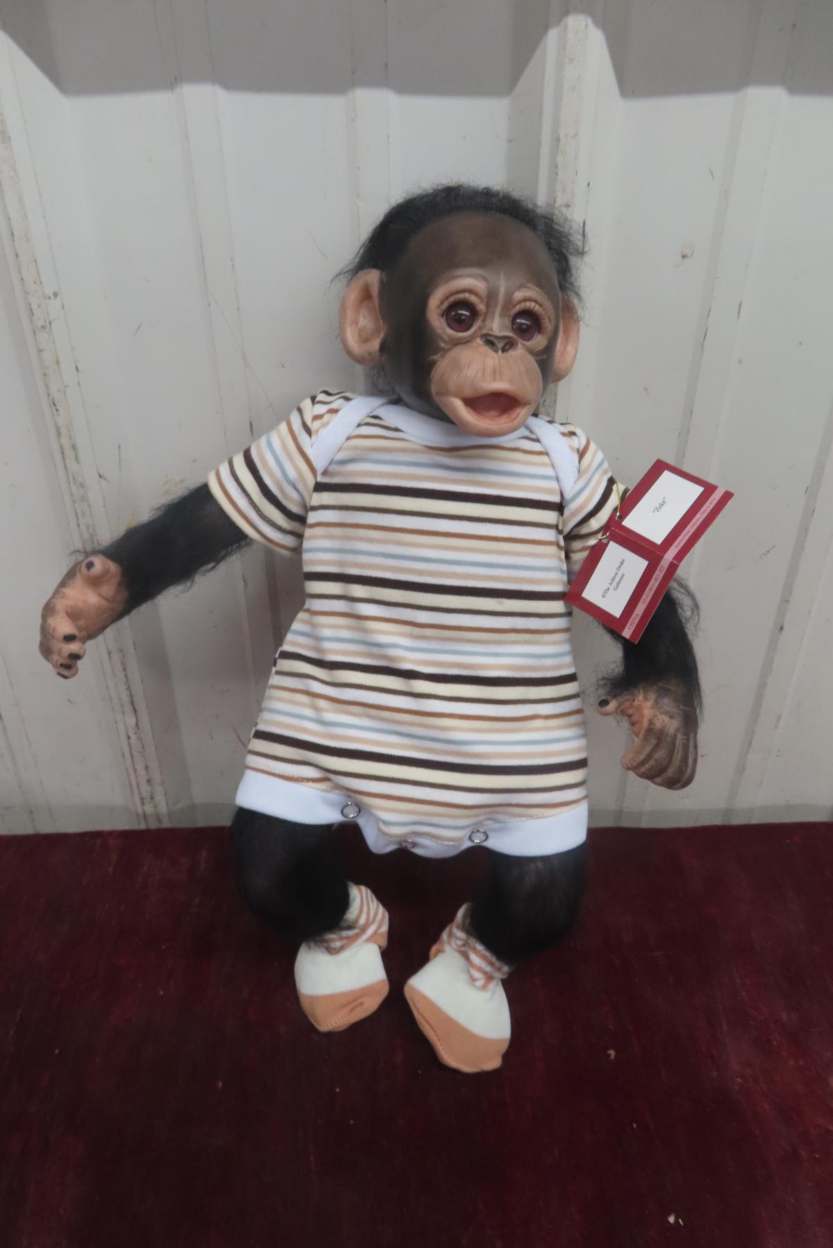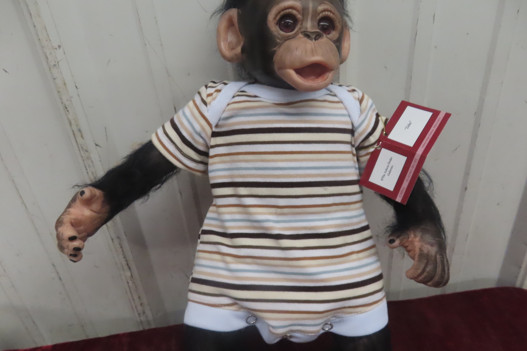 Ashton-Drake “Zeke” Chimpanzee Doll — Realistic Vinyl and Faux-Fur Artist Doll by Cindy Sales; Includes Striped Romper, Matching Socks, Certificate of Authenticity, and Original Box