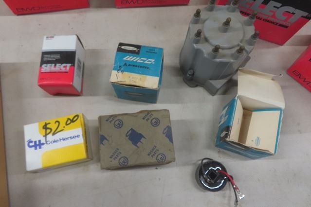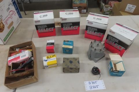 Assorted Automotive Parts in Boxes - Distributor Caps, Coils, Ignitions, Plus More