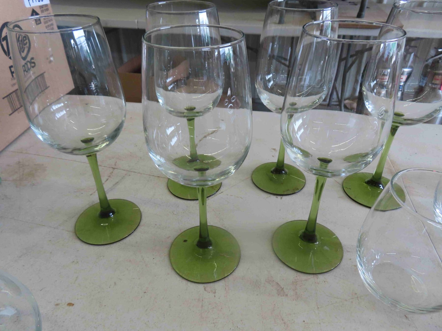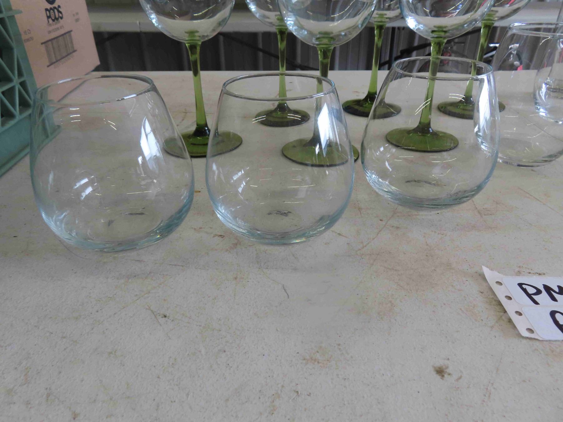 Assorted Barware - 6 Stemmed Wine Glasses, 5 Clear Glasses, 3 Glasses with