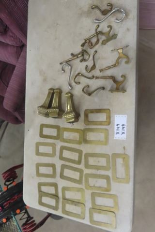 Assorted Brass Items ; Hooks, Post Ends, Surrounds ??