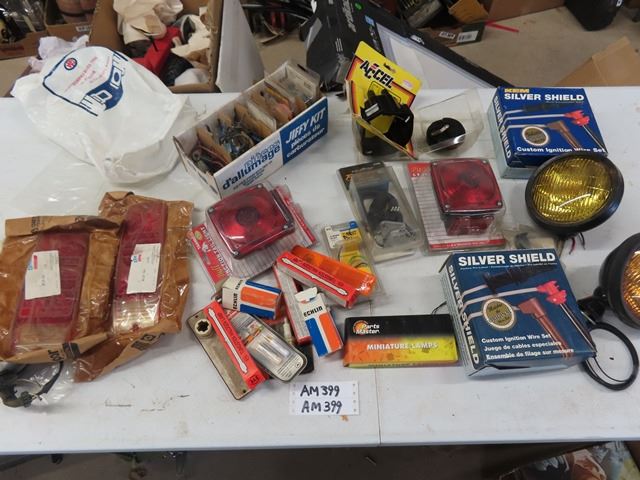 Assorted Car Parts ; Tail Lights, Marker Lights, Wire Sets, Distribution Cap, Switches, plus more