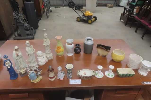 Assorted Ceramic Statues + Figures, Pottery Vases