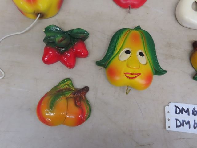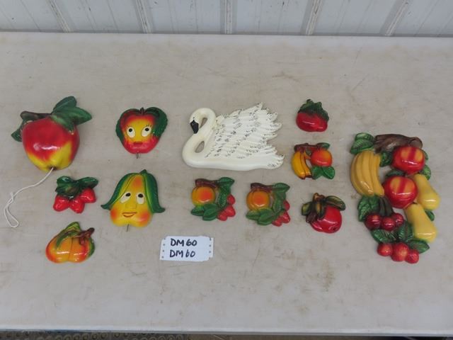 Assorted Chalkware Wall Hangers ; Fruit, Swan, Apple String Holder, 2 Key Holders