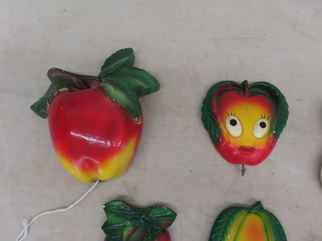 Assorted Chalkware Wall Hangers ; Fruit, Swan, Apple String Holder, 2