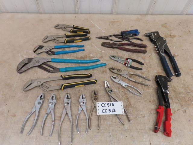 Assorted Channel Lock Pliers, Regular Pliers, Riveters