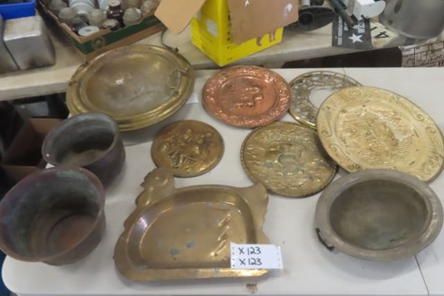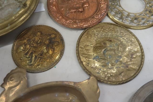 Assorted Copper Items ; Spitoon, Wall Decor, Turkey Tray