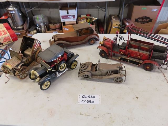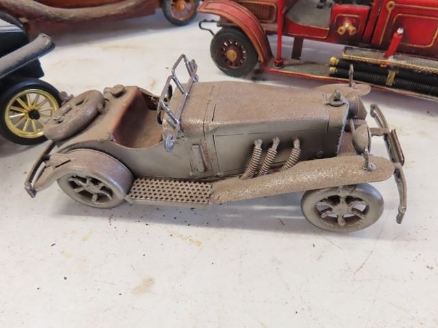Assorted Decorative Cars _ Fire Trucks; Plastic, Wood, Metal - Longest 16"