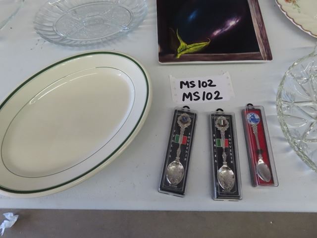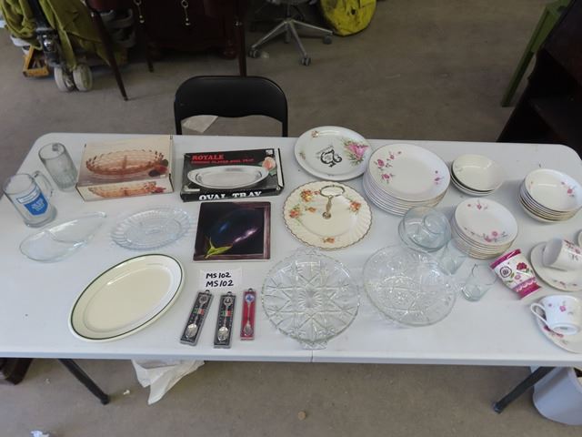 Assorted Dishes ; Plates, Bowls, Cups + Saucers, Serving Trays, Relish Dish, Spoons, plus more