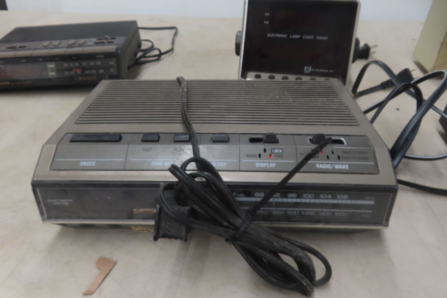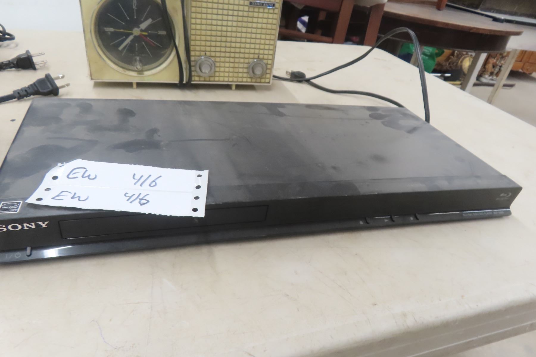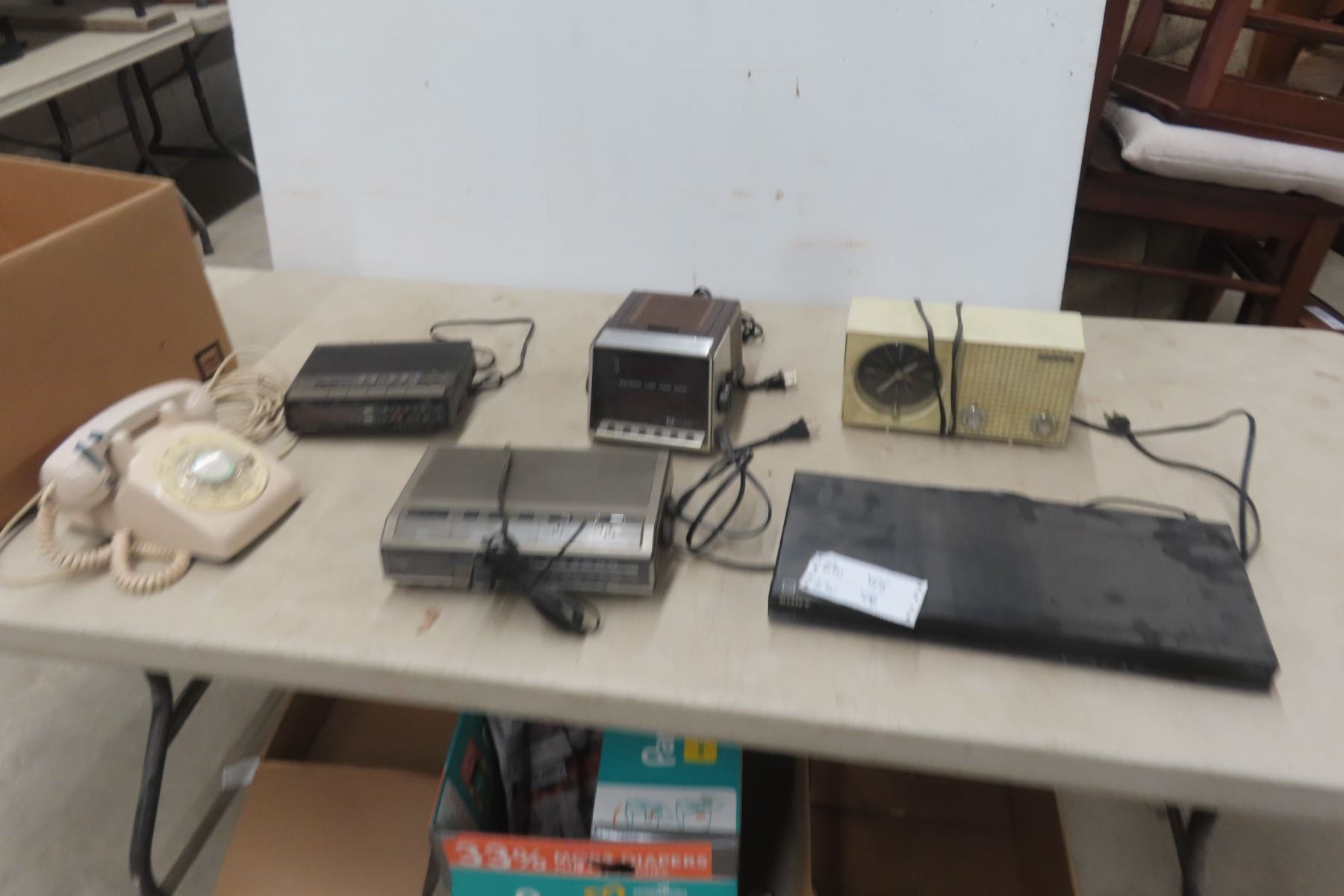 Assorted Electronics: Lloyds Alarm Clock, Candle Chrome Clock, Sony DVD Player, and Telephone