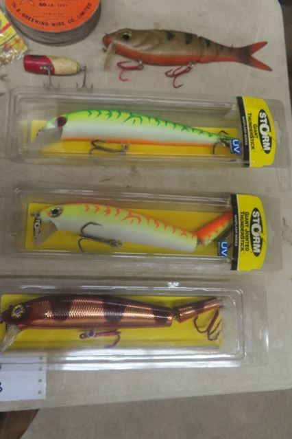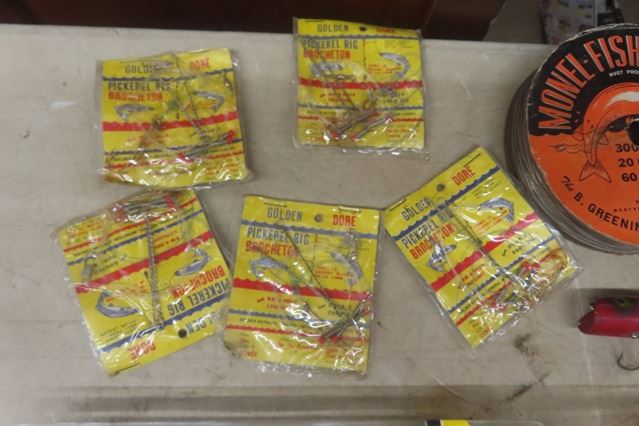 Assorted Fishing Lures , Roll of Vintage Line, Pickerel Rigs