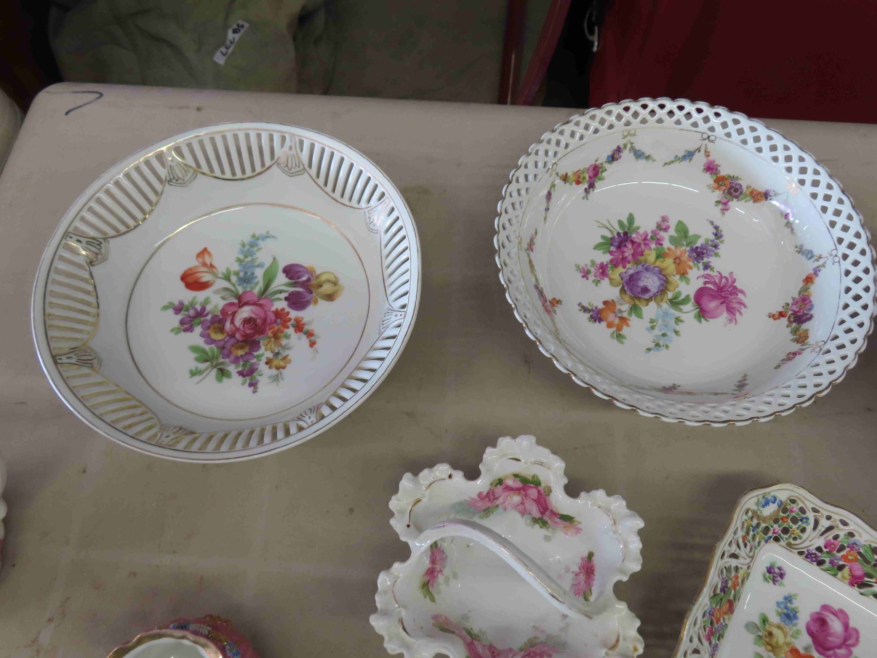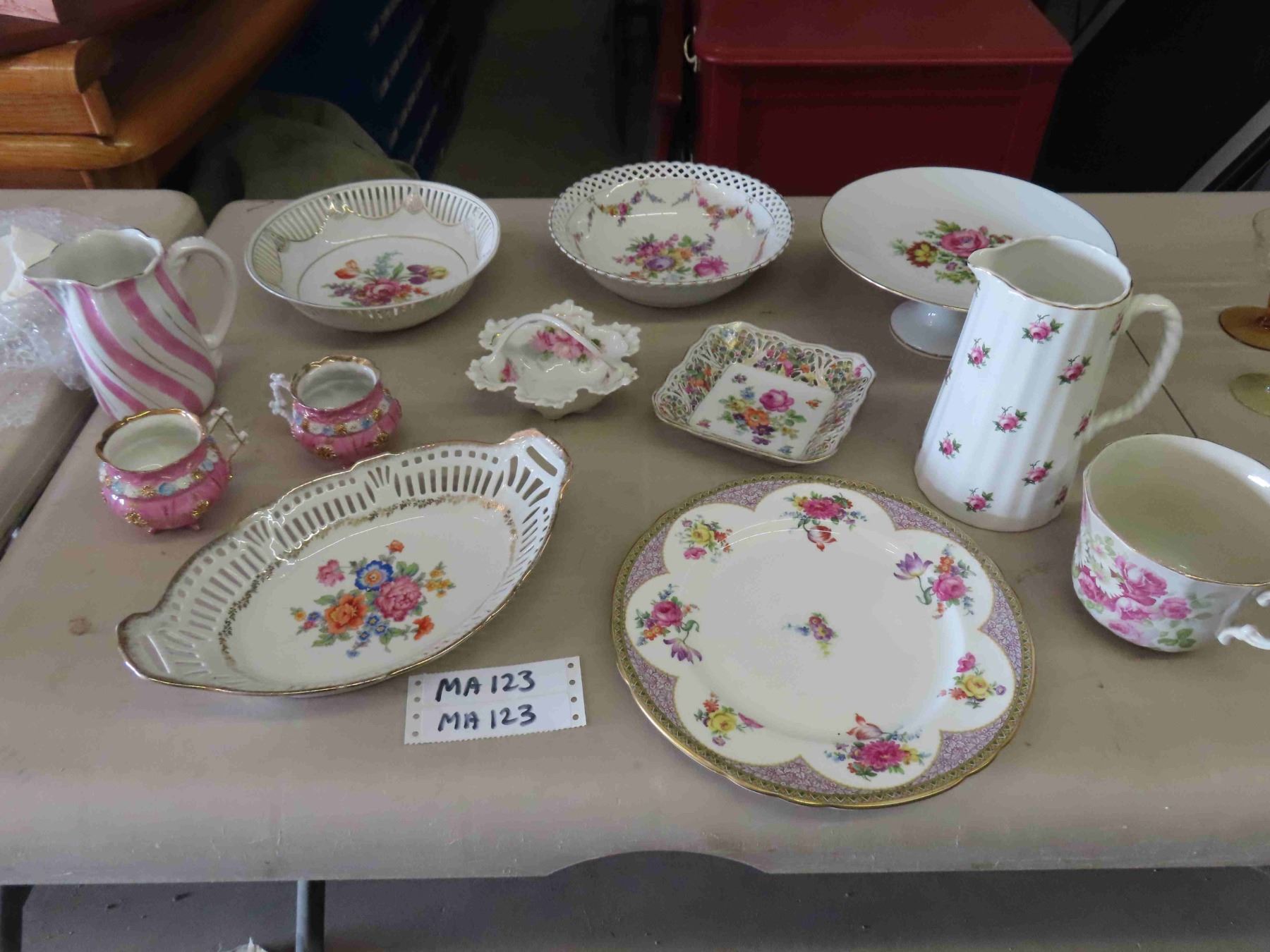 Assorted Floral Pattern Porcelain China ; Pitcher, Cake Plate, Bowls, Cups, plus more