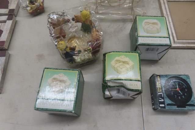 Assorted Gift Ware: Covered Boxes, Acon Collectibles, Christmas Decor, Picture Frame plus more - All New Product