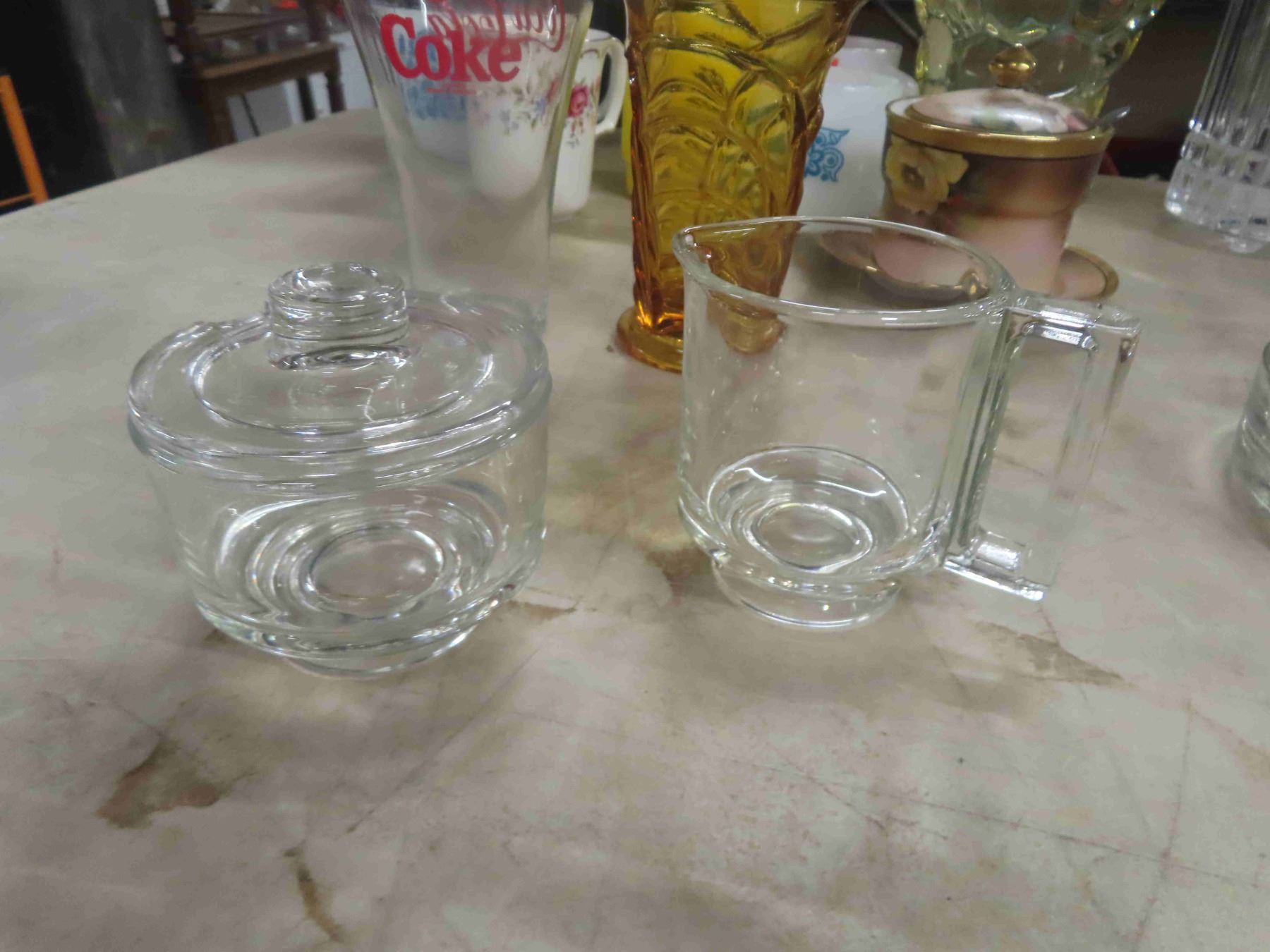 Assorted Glassware ; Mugs, Cream + Sugar Pair, plus more