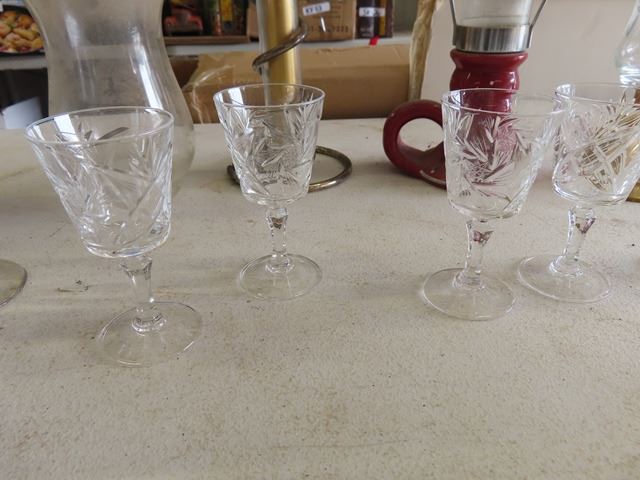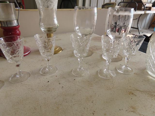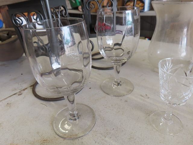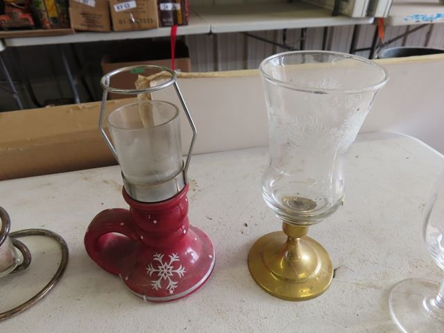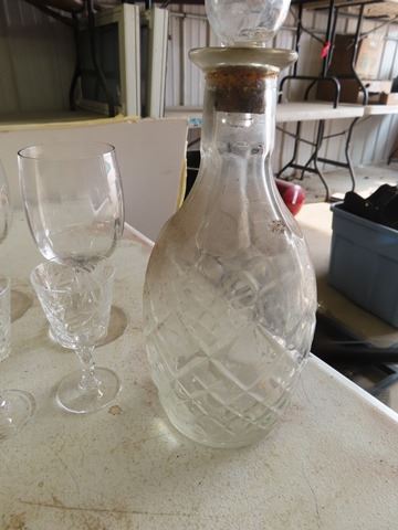 Assorted Glassware ; Wine Glasses, Decanter, Candle Holders, plus more