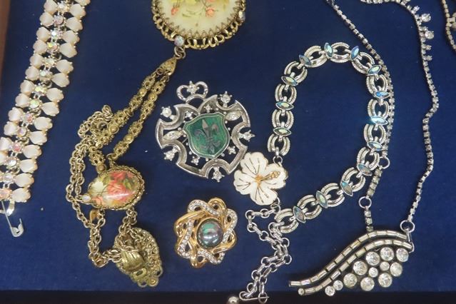 Assorted Glittery Costume Jewelry: Necklaces, Bracelets, Brooches, Earrings