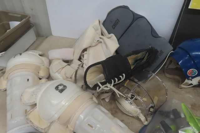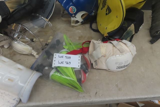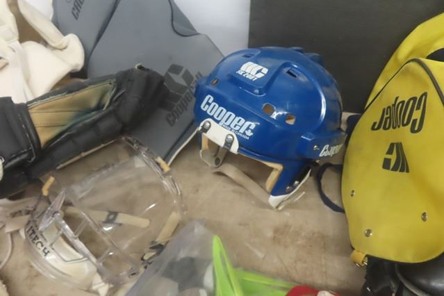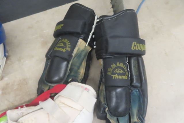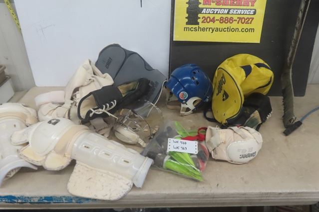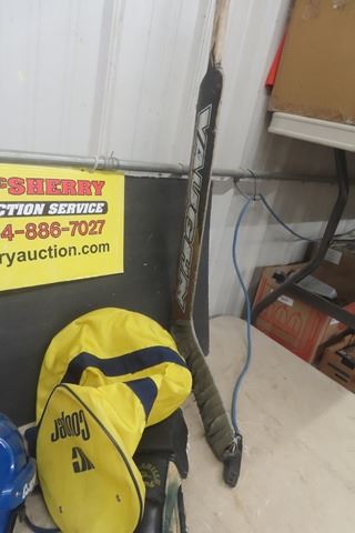 Assorted Hockey Equipment; Pads, Helmet, Goalie Stick, Gloves