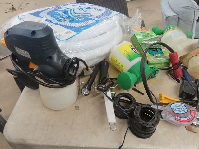 Assorted Odds n Ends: Paint Sprayer, Pool Vacuum Hose, Garden Sprayers, Center Caps plus more