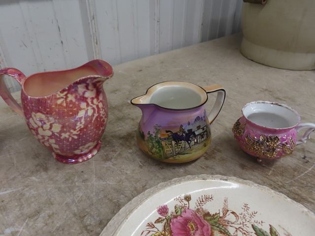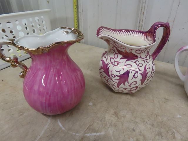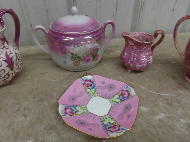Assorted Pink Colored Porcelain China; Pitchers, Plates, Bowls -