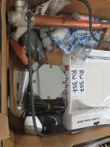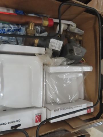 Assorted Plumbing Items: Drains, Elbow, Soap Shelves, Cabinet Hinges plus more Misc.