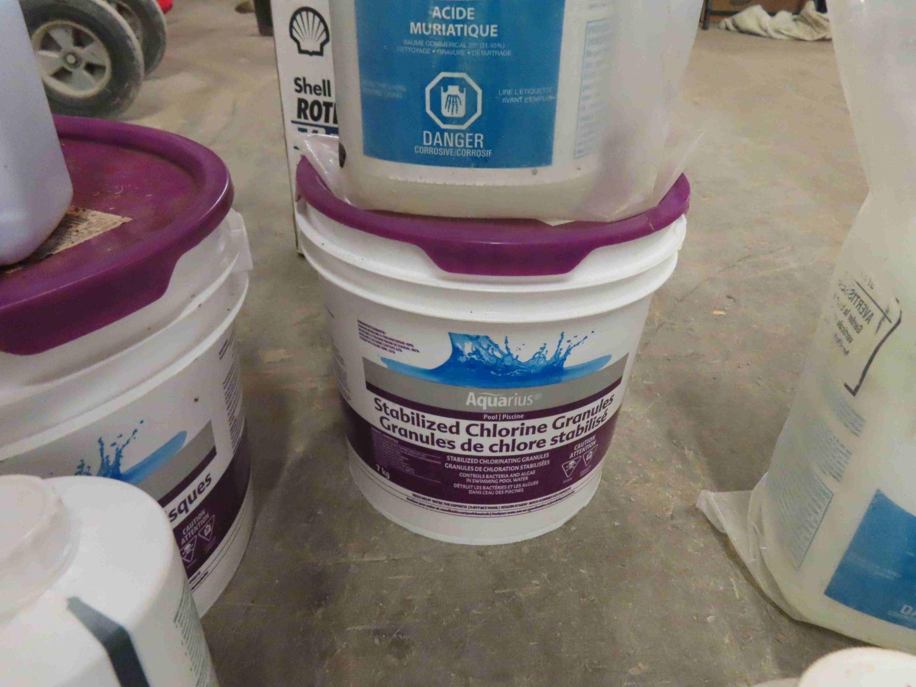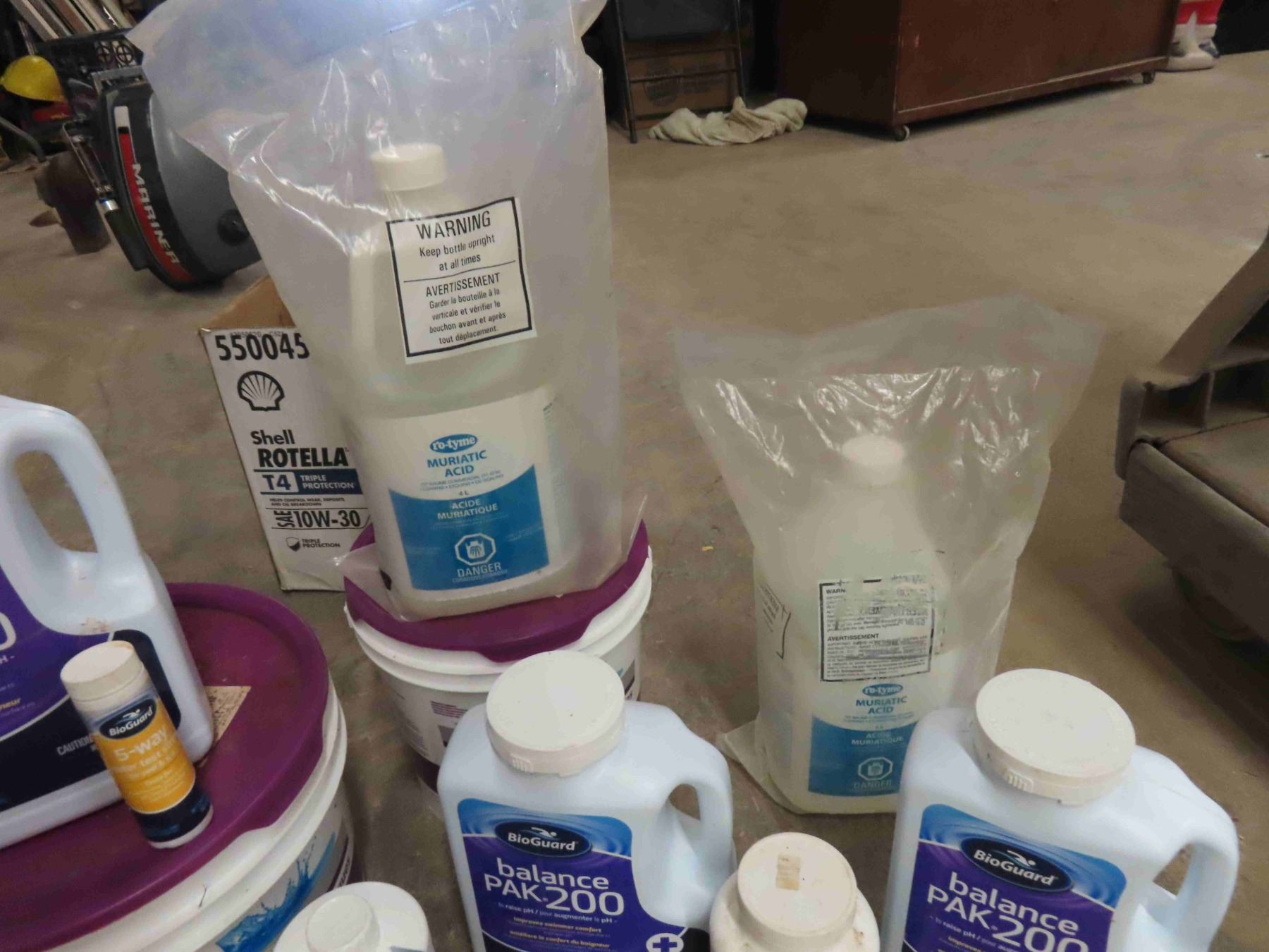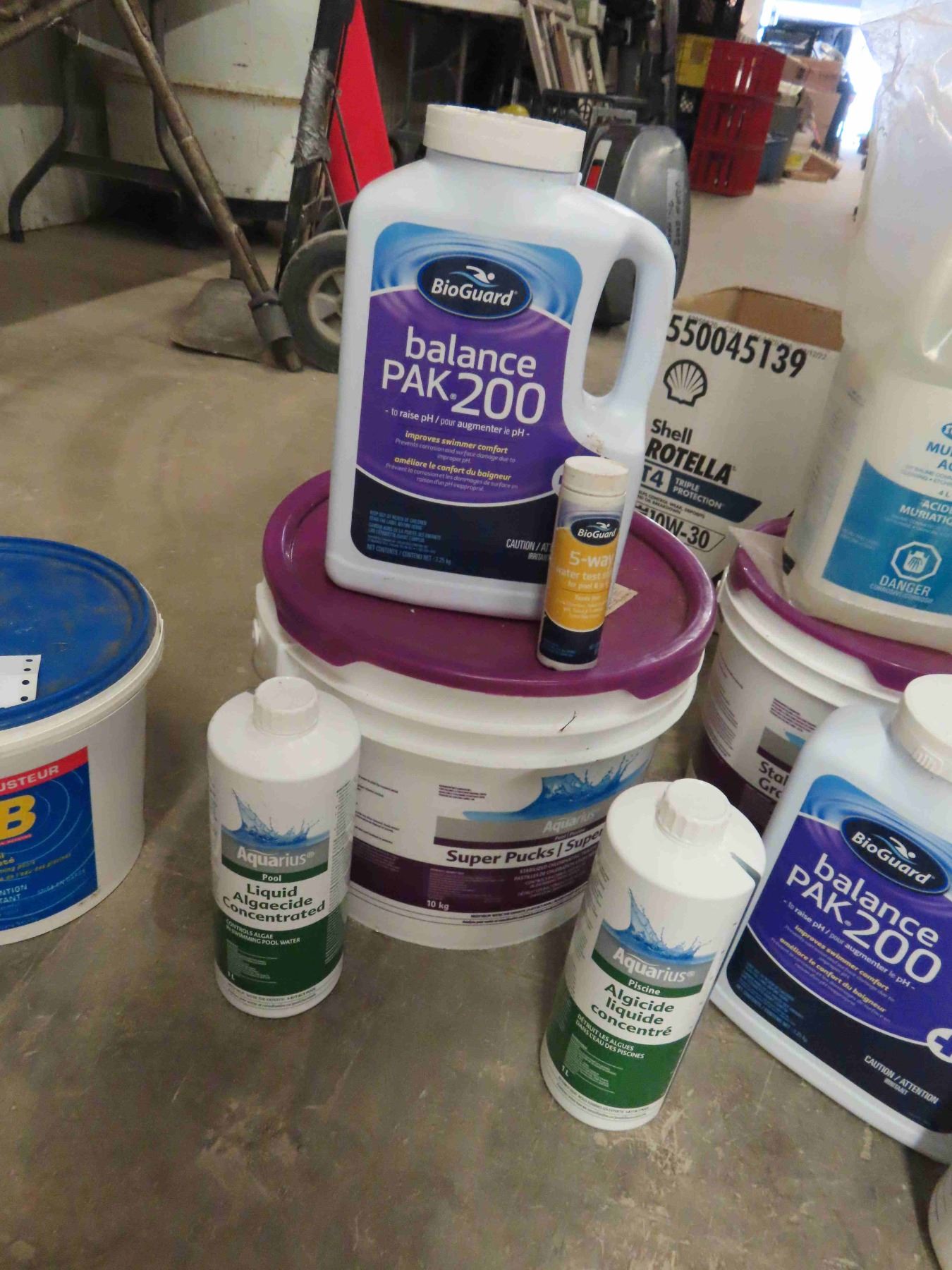 Assorted Pool Chemicals, Muratiz Acid, PH Balance, Liquid Algaecide, Aqua Floc, plus more
