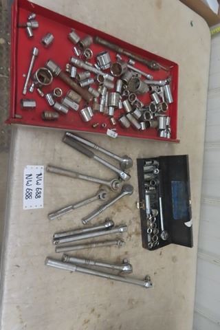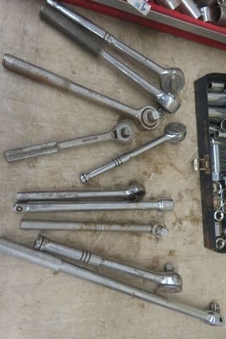 Assorted Ratchets, Sockets, Extensions- 1/4", 3/8", 1/2" Drives- Standard + Metric Up to 1 7/16"