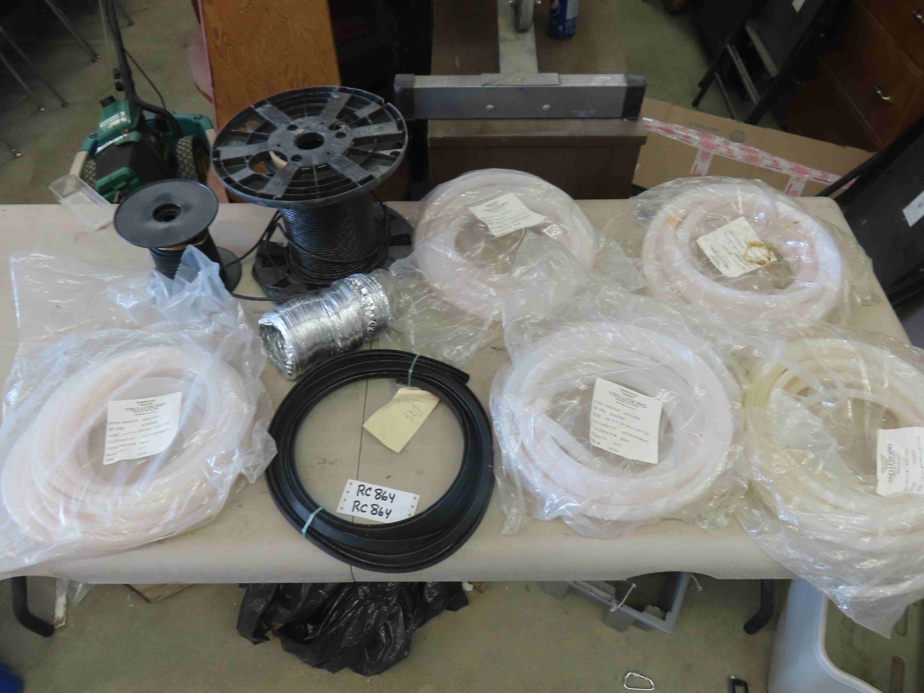 Assorted Rolls Rubber Hose, Vacuum Hose, Partial Roll of Communication Wire, Rubber Edge Guard