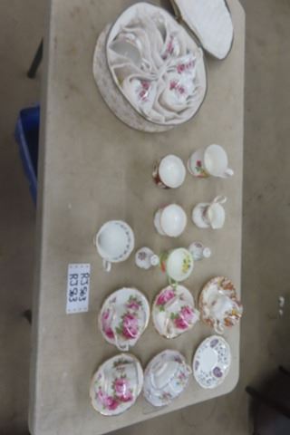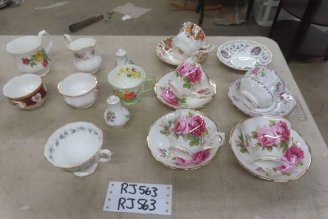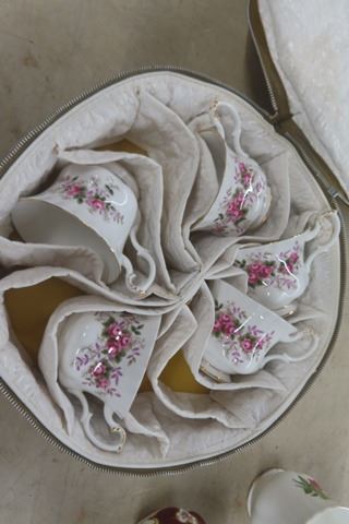 Assorted Royal Albert: Cups, Saucers, Salt + Pepper Shakers- American Beauty, Lavendar Rose, Lenora