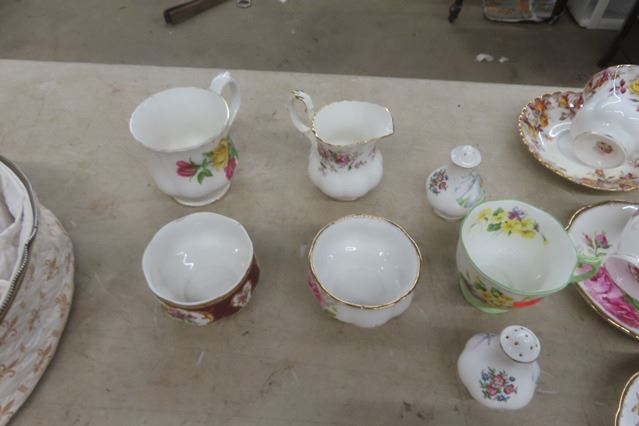 Assorted Royal Albert: Cups, Saucers, Salt + Pepper Shakers- American Beauty, Lavendar Rose, Lenora plus more- 24 pcs Total
