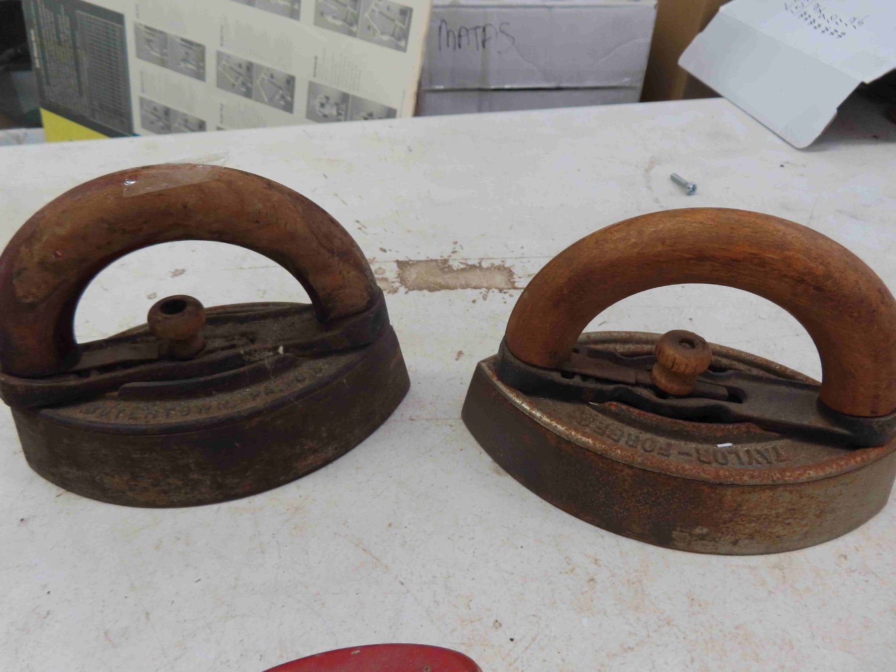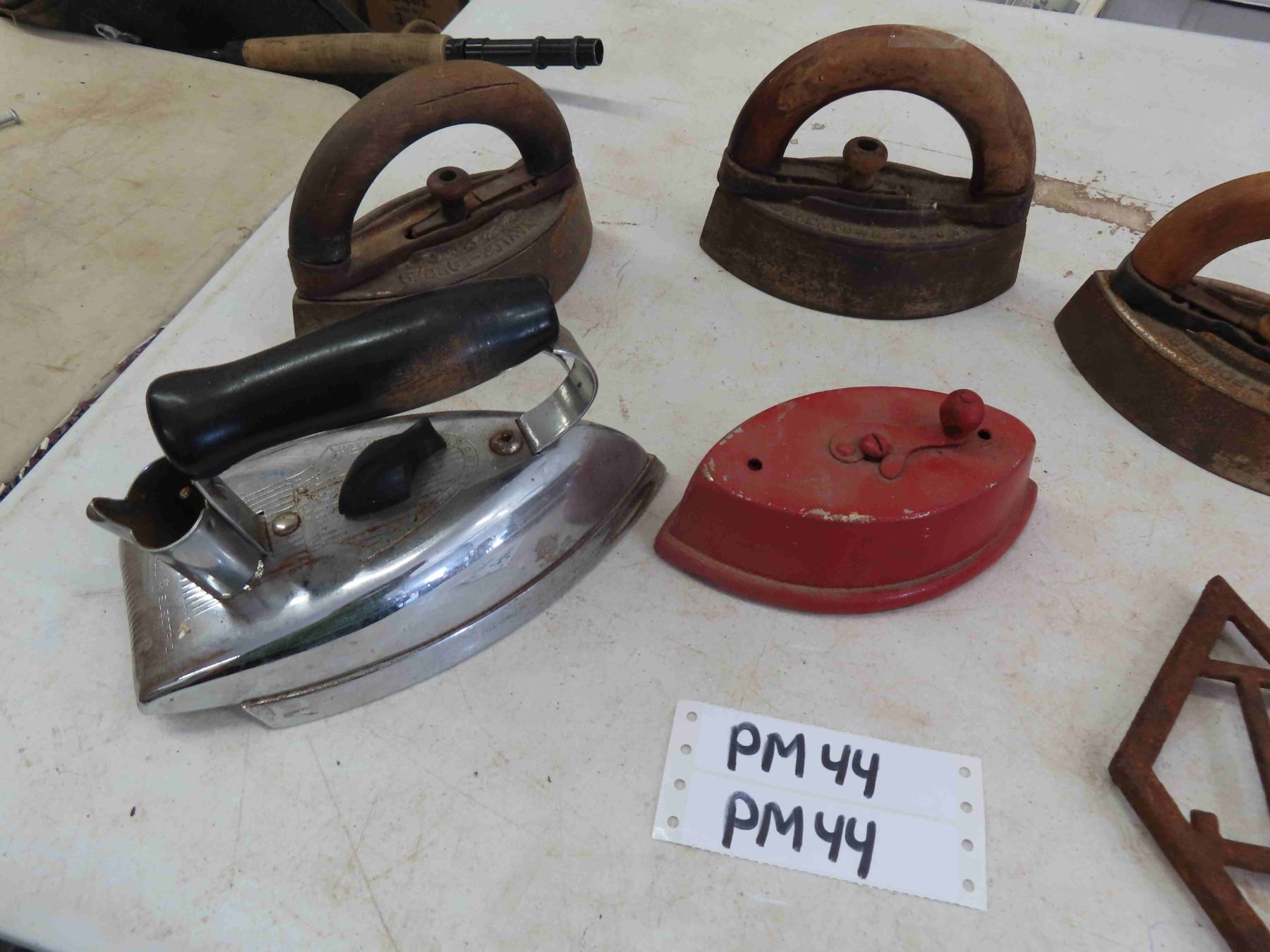 Assorted Sad Irons with Handles - 1 Without, 1 Chrome Iron, Cast Trivet