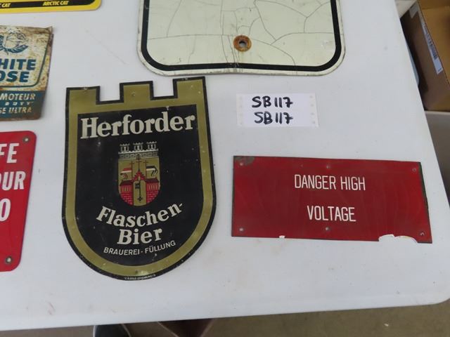 Assorted Tin + Metal Signs ; No Parking, Fire Zone, Snowmobile Crossing, Herforder Beer + More - Largest 12" x 17"