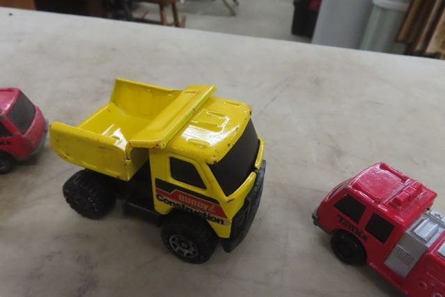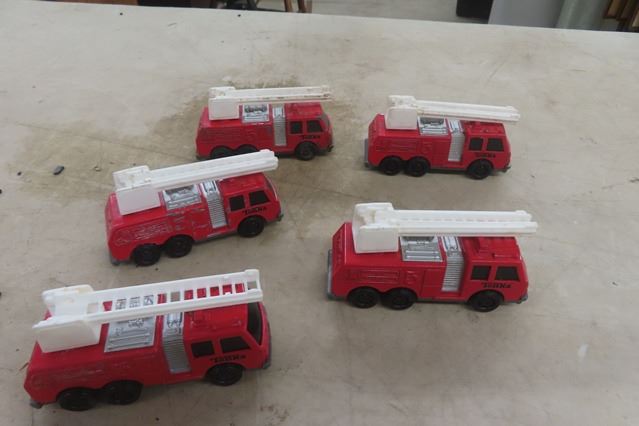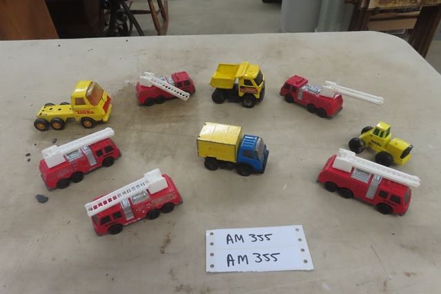 Assorted Tonka Toys ; 5 Firetrucks, Dump Truck, Box Truck