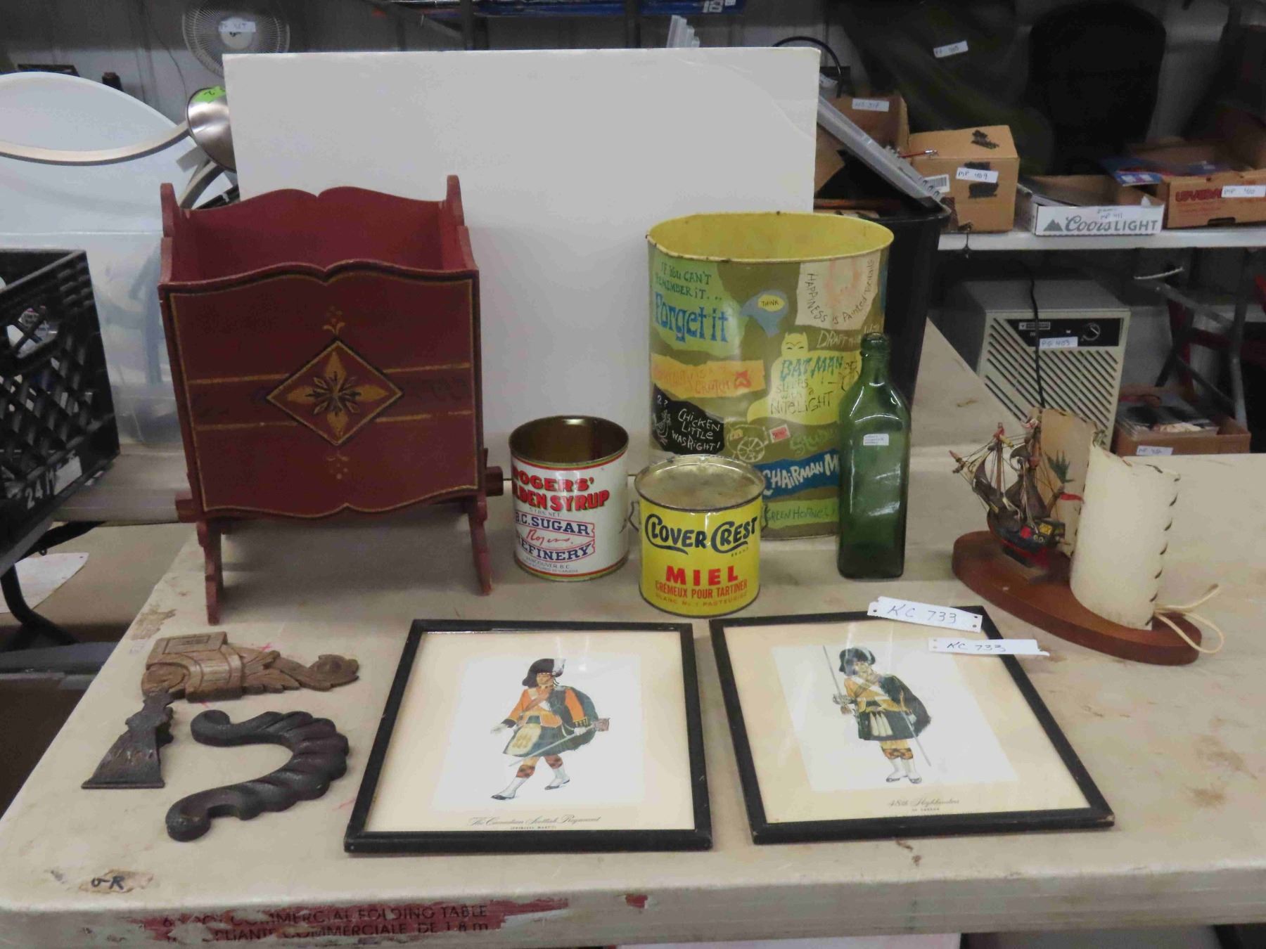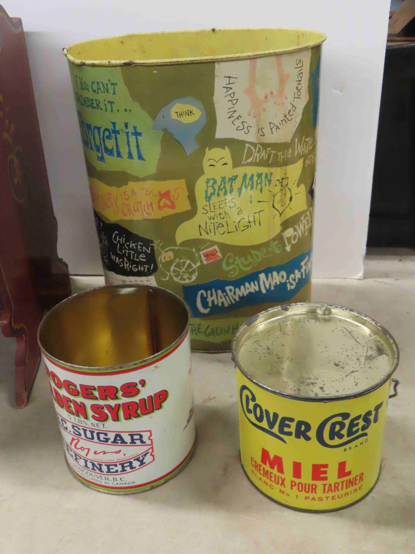 Assorted Vintage Items ; Garbage Cans, Light, Bottle, Ton, Picture