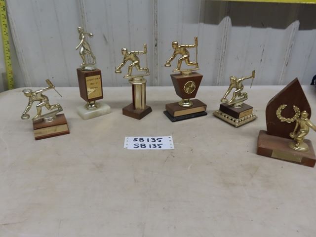 Assorted Vintage Trophies ; 5 Curling + 1 Bowling