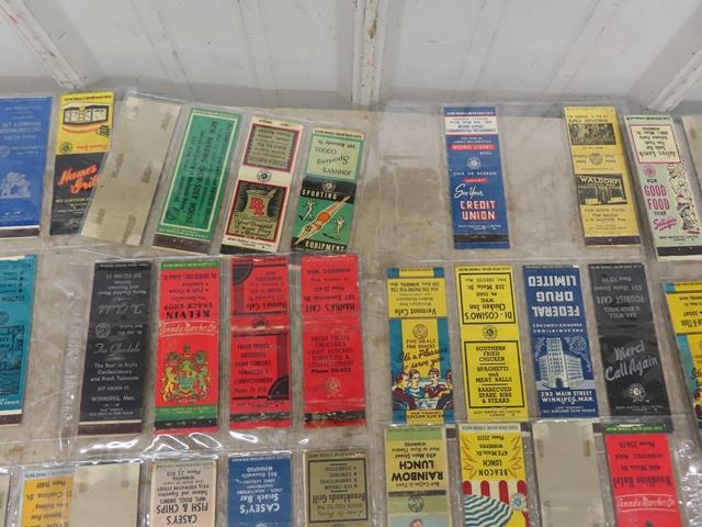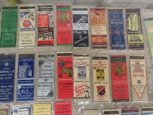 Assorted Vintage Winnipeg Business Match Book Covers - 1940's + Up : Restaurants, Grocer, Hotels, plus more - Also on Back Side of Page