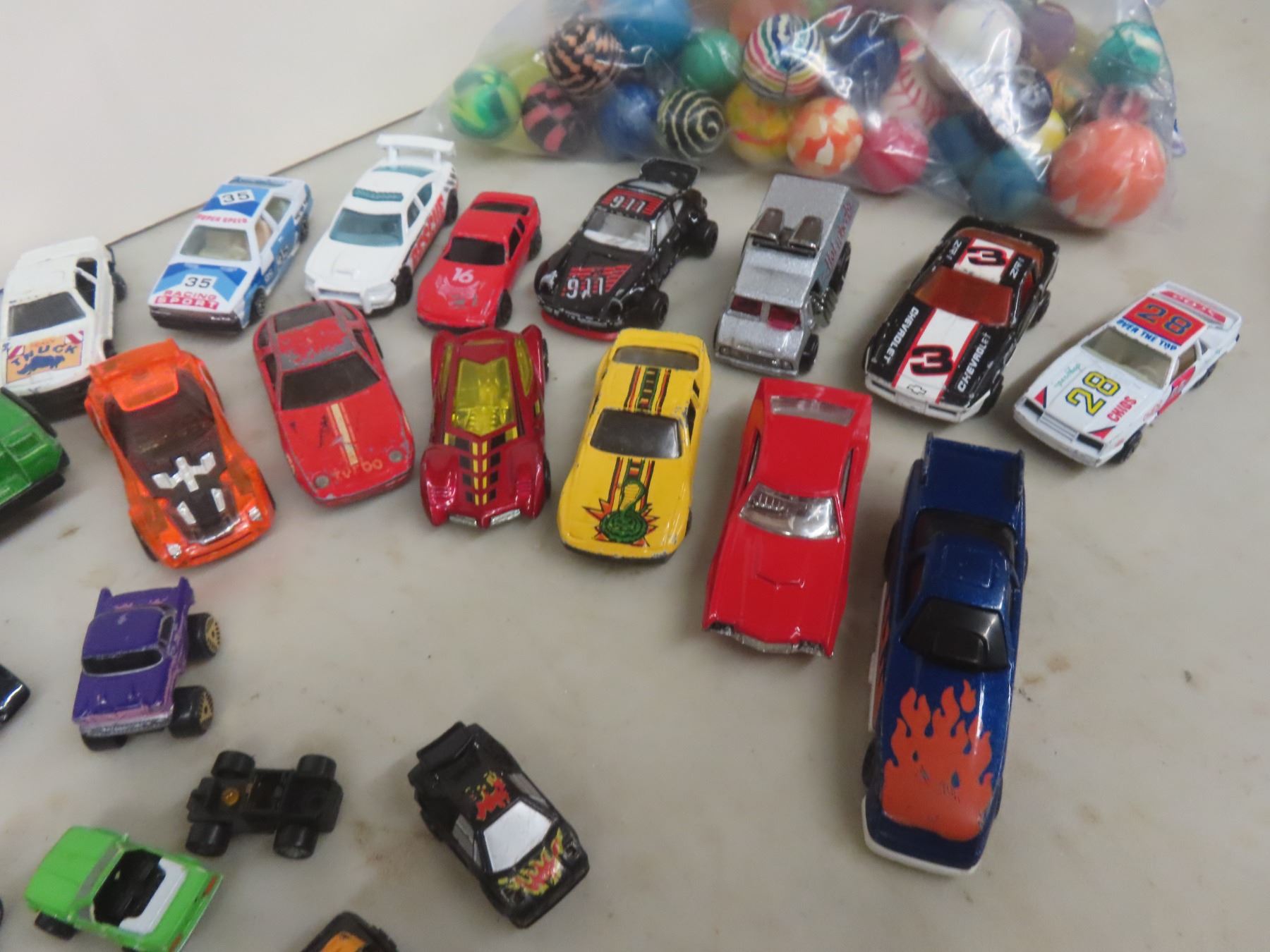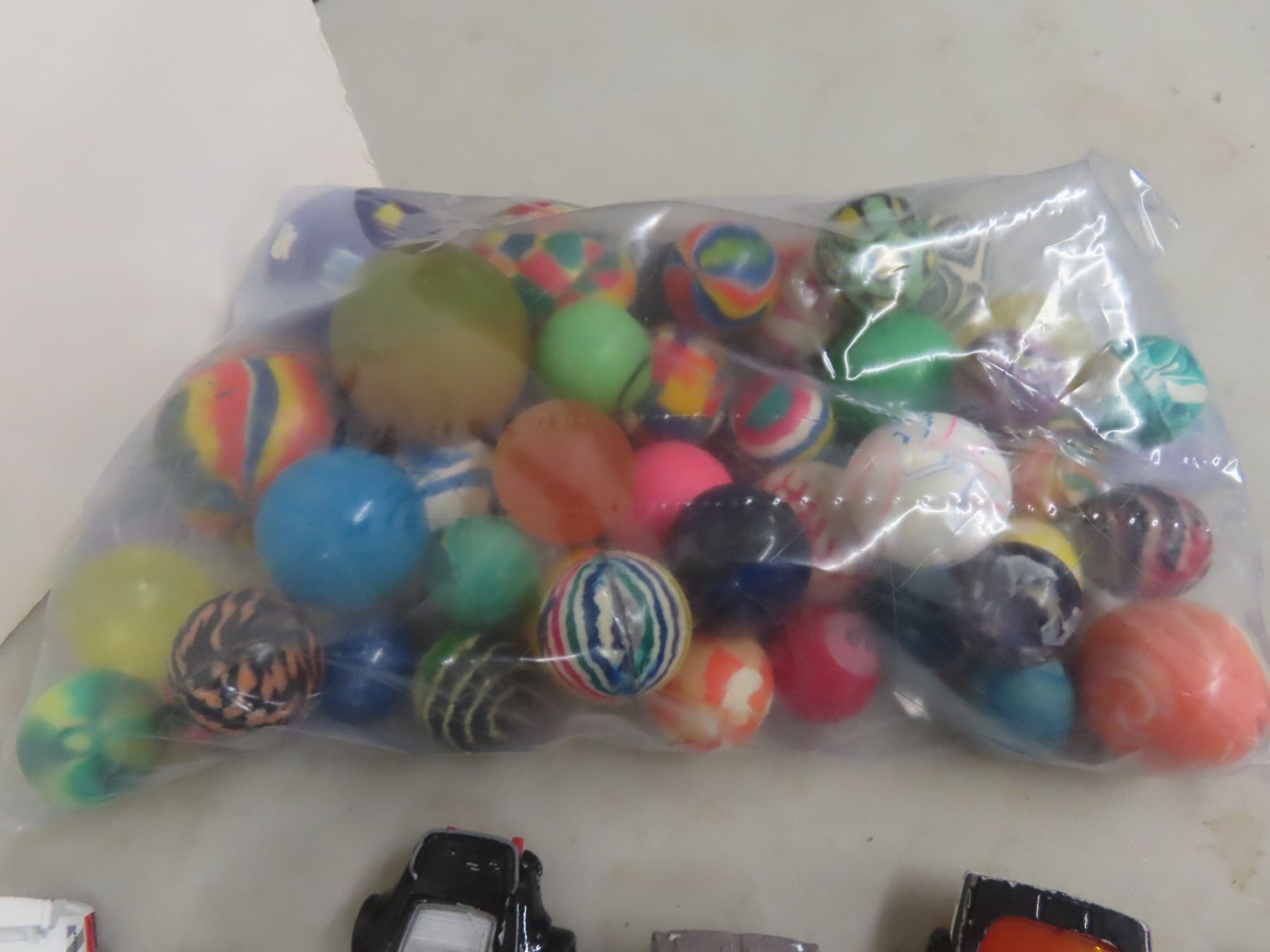Assortment of Hot Wheels, Diecast Vehicles, Micro Machines, 44 Super Balls, Roblox Mini Figures