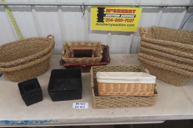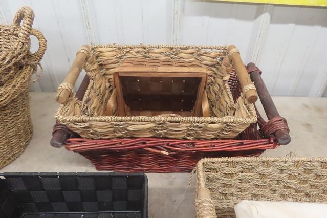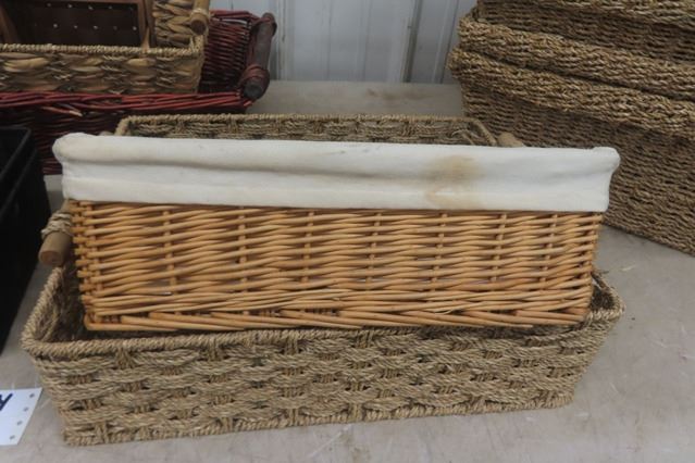 Assortment of Wicker + Fabric , Baskets- All Sizes 17 Total